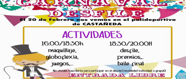 El próximo 20 de Febrero se realizará en el Polideportivo de Castañeda una GRAN FIESTA DE CARNAVAL.