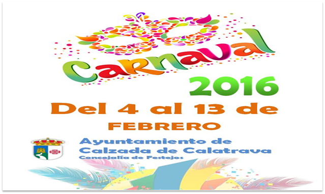 21:30h. PREGÓN DE CARNAVAL a cargo de «LOS COMEDIANTES». (Grupo de teatro de adultos). Sorteo de un JAMÓN entre los asistentes que vayan disfrazados.