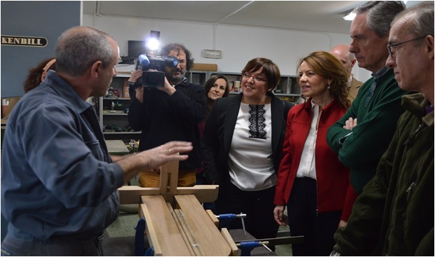 En el recorrido por las instalaciones, la consejera de Bienestar Social, que ha estado acompañada por el director de Cáritas Diocesana, Fermin Gassol, la coordinadora provincial, Carmen Nieto, y por la directora de la Casa de Abraham, Mayte García, ha saludado a los residentes que en ese momento participaban en los talleres de carpintería y encuadernación, núcleos fundamentales del programa de reinserción.