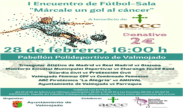 El próximo 28 de febrero os esperamos a todos en el I Encuentro de Fútbol-Sala contra el Cáncer de Valmojado «Márcale un gol al cáncer» a beneficio de la AECC.