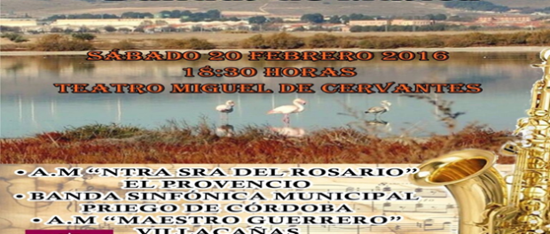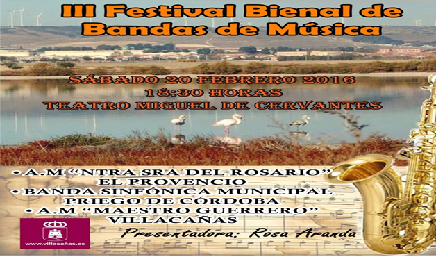 El próximo sábado día 20 de febrero, la Asociación Musical Ntra. Sra. del Rosario visita Villacañas para participar en el III FESTIVAL DE BANDAS DE MÚSICA a las 18:30 horas, en el Teatro Miguel de Cervantes. Le acompañarán la Banda Sinfónica Municipal Priego de Córdoba y la Asociación Musical Maestro Guerrero de Villacañas.
