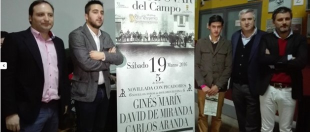 David de Miranda, onubense que ha realizado 28 paseillos en 2015. Ha toreado en la Ventas, Sevilla y Huelva, donde cortó un rabo, después de 30 años sin que nadie lo hiciera. El tercer novillero es Carlos Aranda, daimieleño que debutó con caballos en Guadalajara en 2014. El pasado año sufrió una cogida en Infantes que le hizo perder casi toda la temporada. Afronta 2016 como su año decisivo y espera despedirse por todo lo alto como novillero.