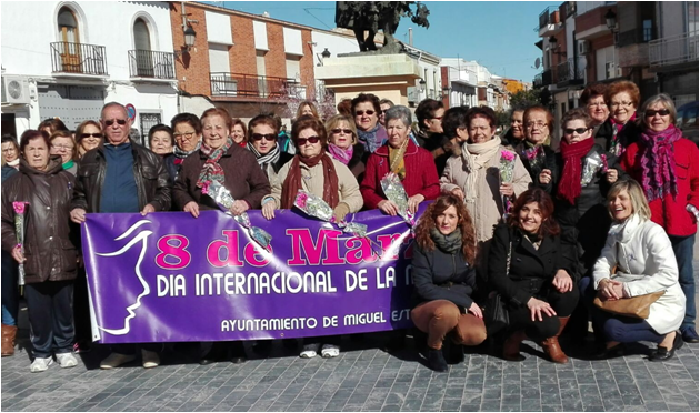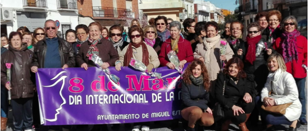 Cerca de un centenar de personas, la mayoría mujeres pero también algunos hombres, han participado en la Marcha por la Igualdad que ha tenido lugar esta mañana en Miguel Esteban con motivo del Día Internacional de la Mujer.