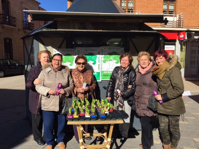 La directiva de la Asociación de Familias y Mujeres del Medio Rural (AFAMMER) en Malagón ha querido participar en el Día Internacional de la Mujer, que se celebra hoy, día 8 de marzo, repartiendo plantas y un lazo conmemorativo.