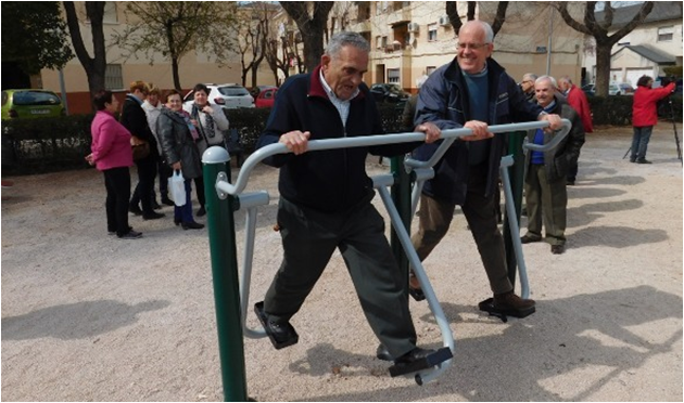 Daimiel ya cuenta con un espacio de gerontogimnasia al aire libre. Este martes al mediodía se inauguraba en el parque del Carmen, frente al Pabellón Municipal y al Complejo de Deportes de Raqueta, la zona que alberga los seis aparatos biomecánicos que ha financiado la Obra Social de La Caixa para el proyecto solicitado por la asociación Aires Nuevos. A su puesta en funcionamiento ha asistido el director de La Caixa en Daimiel, Juan Perea, la presidenta de la asociación, María del Carmen Torija, y el alcalde de Daimiel, Leopoldo Sierra, quién agradecía a los dos artífices de la iniciativa su colaboración para hacer este proyecto realidad. Sierra esperaba que la elección de su ubicación, al lado de la zona deportiva municipal, favorezca una utilización masiva, respetuosa y adecuada conforme a las capacidades del usuario.