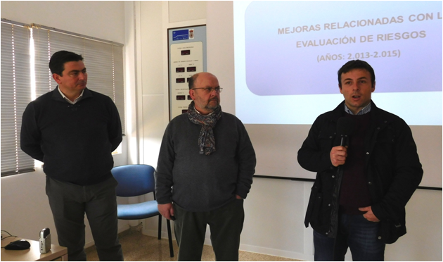 El concejal de Urbanismo, Javier Fisac, visitaba este jueves las instalaciones de la Estación Depuradora de Aguas Residuales (EDAR) de Daimiel, para conocer las últimas mejoras llevadas a cabo en la instalación por la empresa ‘Aquambiente - Servicios para el sector del agua SA’, actualmente adjudicataria del servicio. Unas mejoras que afectan al proceso de depuración en la planta y a su aspecto exterior, pero, sobre todo al ámbito de la prevención de riesgos laborales. En total, de los 256.707 euros invertidos desde el año 2013, prácticamente un 60%, 152.785 euros, se han destinado a incrementar las condiciones de seguridad de los trabajadores de la depuradora. De esta manera, se ha procedido a la instalación de nuevas escaleras, barandillas y plataformas de acceso en diferentes espacios, así como protecciones en algunas partes móviles para evitar atrapamientos. Así mismo, se ha actualizado toda la señalización de la planta, renovado el alumbrado de emergencia y protegido las partes activas de los cuadros eléctricos. Además, se ha dotado a la depuradora de agua potable en el edificio de control y ducha lavaojos. El resto de inversiones, 103.922 euros, se dividen en actuaciones ejecutadas en relación con las deficiencias encontradas por la empresa al asumir el servicio (17.054 euros) y mejoras comprometidas en el contrato de cesión (86.868 euros). De esta manera, desde el año 2013 se ha acometido una serie de reparaciones y actuaciones que afectan a distintas fases del proceso de depuración, así como mejoras paisajísticas, además de la dotación a la planta de una unidad móvil de control de vertidos industriales. Según explicaba el concejal, este proceso de mejoras va a continuar próximamente. En este sentido, Fisac señalaba el próximo inicio de las obras de la futura balsa de tormentas “que mejorará la calidad del agua residual que entre en la depuradora en las primeras escorrentías de los episodios de lluvias intensas”. Una inversión que asciende, según el concejal, “a un total de 240.000 euros, de los que 67.000 los aportan Parques Nacionales, y 20.000, la Diputación Provincial de Ciudad Real”. Por su parte Francisco Torres, responsable de la planta, insistía en el compromiso de ‘Aquambiente - Servicios para el sector del agua SA’, “con la responsabilidad medioambiental, social y con la seguridad de su personal”, así como en su colaboración con el ayuntamiento.