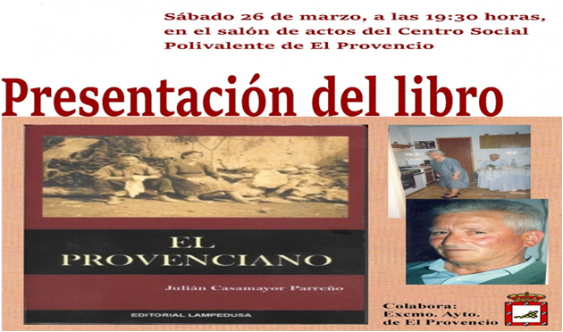 El Provencio. El próximo sábado día 26 de marzo tendrá lugar la presentación del libro EL PROVENCIANO, por Julián Casamayor Parreño