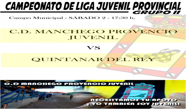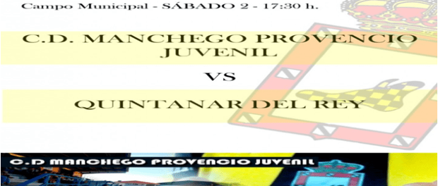 - Y el sábado, a las 17:30 horas, CD MANCHEGO PROVENCIO JUVENIL contra QUINTANAR DEL REY.