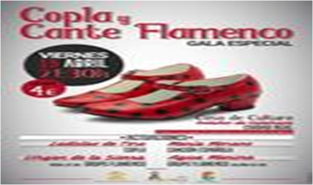 El próximo día 15 de abril de 2016 a las 21:30 horas se celebrará una gala flamenca y de copla en la Casa de Cultura.