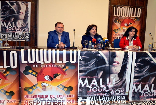 Los conciertos de Loquillo y de Malú, los días 8 y 9 de septiembre respectivamente, son los platos fuertes de los conciertos que ha programado el Ayuntamiento de Villarrubia de los Ojos (Ciudad Real) con motivo de sus Fiestas Patronales del próximo verano, tal y como han presentado hoy la alcaldesa villarrubiera, Encarnación Medina; la concejal de Festejos Rosa Redondo, y Agustín Lozano, de la promotora de los conciertos “Creación y Diseño de Eventos Musicales SL”, en el Museo del Quijote de Ciudad Real.