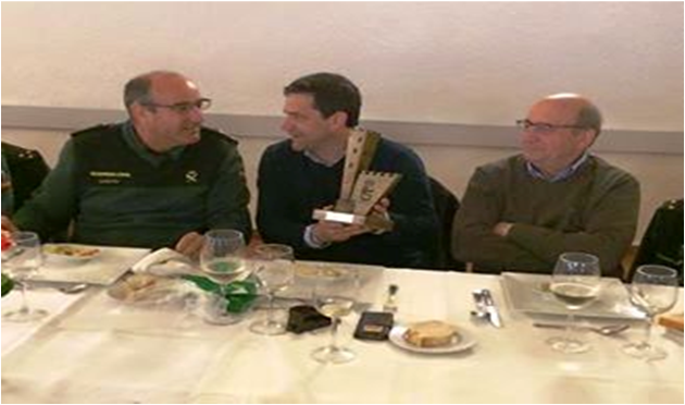 Por esa razón, como alcalde, y en representación de nuestro pueblo, hice entrega al Tte. Coronel de un recuerdo de nuestro municipio consistente en una talla en madera de nuestro castillo, realizada por los alumnos del Centro Ocupacional de Bolaños. De igual forma, el Teniente Coronel me hizo entrega de una cerámica que representa uno de los símbolos de la Guardia Civil, un tricornio”.