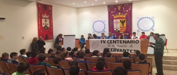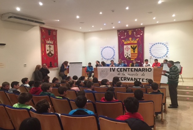 Así los quintos y sextos de los dos colegios han acudido para participar en un concurso similar al “pasapalabra” de televisión. Las preguntas han girado en torno al autor de la genial obra Don Quijote de la Mancha y han estado moderadas por Antonio González, que otro año más colabora desinteresadamente en el desarrollo de esta actividad.
