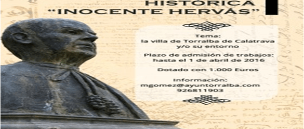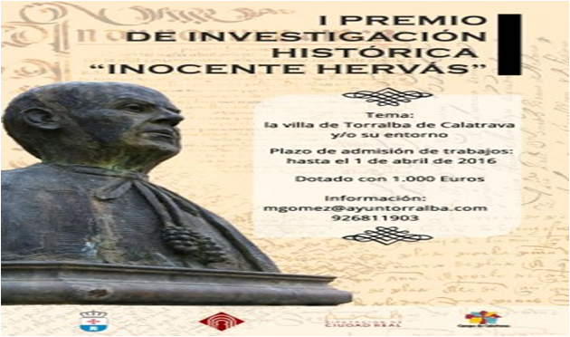 El Ayuntamiento de Torralba de Calatrava ha convocado el I Premio de investigación histórica “Inocente Hervás”, que pretende distinguir el mejor trabajo de investigación sobre la Historia de Torralba de Calatrava y su entorno. El principal objetivo de este premio es dar a conocer su devenir histórico y las raíces de su cultura.