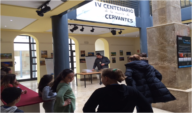 En la mañana de hoy viernes, día 22 de abril se ha celebrado en el Centro Cultural Santa Teresa una gymkhana cultural centrada en la vida y obra de Miguel de Cervantes para los niños de los Colegios “Cañada Real” y “Santa Teresa” con ocasión de la celebración del IV Centenario de su muerte.
