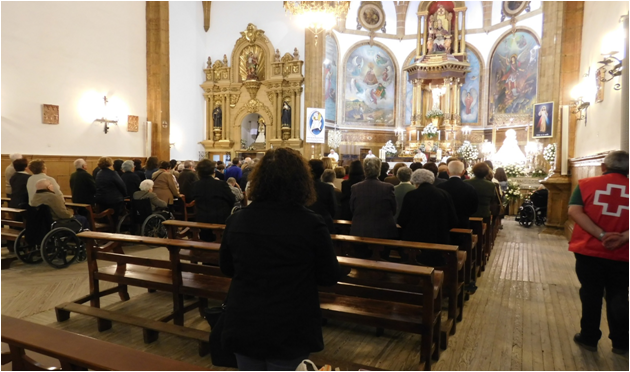 Por otro lado, y aprovechando la estancia de la Patrona en la localidad, este jueves se llevó a cabo un encuentro en la iglesia de San Pedro en el que participaron los mayores de las residencias de la localidad en el que intervinieron los párrocos Valentín Sánchez Rojas y Eulalio Asensio.
