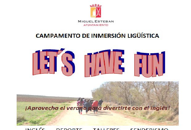 El Ayuntamiento de Miguel Esteban, a través de la Concejalía de Cultura, ha organizado un campamento de inmersión lingüística, que se desarrollará del 11 al 15 de julio en el Paraje de San Isidro.