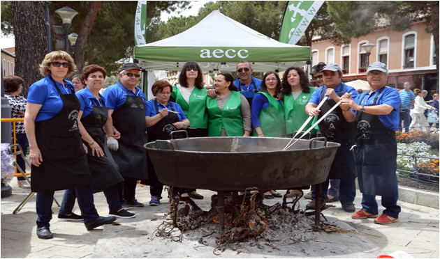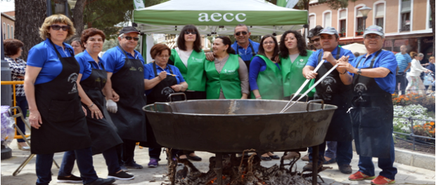 Una prolongada fila se vislumbraba desde cualquier punto de la Plaza de España. Personas que aguardaban su turno y que se saldó con cerca de 500 raciones repartidas, e incluso decenas de personas en la fila que aguardaban su turno sin poder degustarla; una cantidad que se convalida en 580 euros de recaudación, gracias a la colaboración de la asociación de vecinos del barrio de San Isidro por la elaboración del menú. A ese dinero también hay que sumar lo que se recaudó en la mesa informativa, llegando a un total de "más de 700 euros", según informaba la presidenta de la junta directiva local de la AECC, María Ángeles García de la Galana.