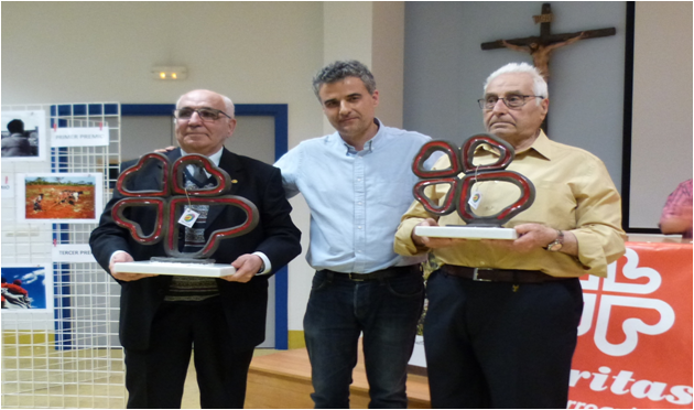 Las Jornadas de Sensibilización del Día de la Caridad que organiza Cáritas Interparroquial continuaban este martes en el Centro Pastoral Josefinas, con la entrega de premios de los concursos de fotografía y relato breve organizados por la organización católica para la ocasión y el reconocimiento especial a la labor en Cáritas Daimiel durante más de 30 años, a Manuel Fernández-Bermejo Martín-Portugués y Maximiliano García Peñalver, que recibieron sendas esculturas artesanas con el logotipo de la organización católica. "Parte de la historia viva de Cáritas en la localidad", según palabras de Julián Gigante, actual director de Cáritas en Daimiel, que justificaba este reconocimiento por que "es de justicia agradecer y reconocer públicamente su labor desinteresada y generosa, así como su entrega constante y sensibilidad por los más desfavorecidos". "Su testimonio -reconocía- es ejemplo y espíritu para todos los que formamos parte de la familia de Cáritas".