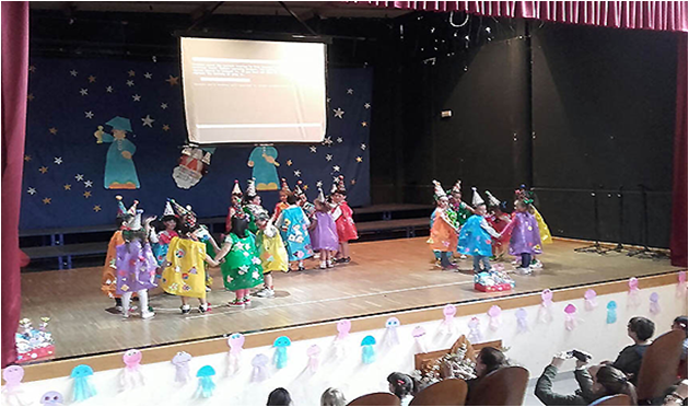 El evento comenzaba a las diez y media de la mañana, con el teatro que protagonizaron los alumnos de segundo curso de Primaria, quienes pusieron en escena ‘Cuando llega la noche’. Siguió la actuación de Infantil con ‘Fofó era un payaso’ en tanto que los de 1º ofrecieron la canción ‘Duele el corazón’.