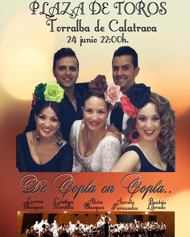 Este fin de semana musical en Torralba comienza el viernes 24 de junio, con la actuación del cantante local Aurelio Fernández, junto a cuatro reconocidas voces de la copla en Castilla-La Mancha y con el acompañamiento musical de la Asociación Amigos de la Música de Torralba de Calatrava, que ofrecerán el concierto “De copla en copla”. La canción española tomará la Plaza de Toros de esta localidad a partir de las 22,30 horas para hacer un recorrido por los mejores temas de la copla que tanto gustan .