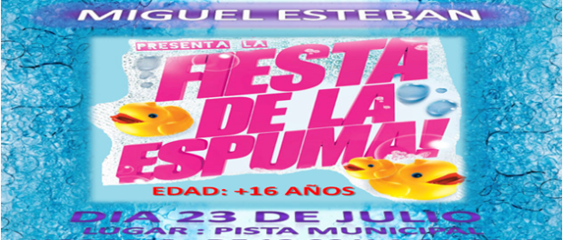 Previamente, la Pista Municipal acogerá una fiesta de la espuma para personas de más de 16 años de edad. Esta fiesta, también organizada por la Concejalía de Festejos, comenzará a las seis de la tarde y se prolongará hasta las nueve de la noche. La fiesta contará con la colaboración de dos DJ’s voluntarios de Miguel Esteban.