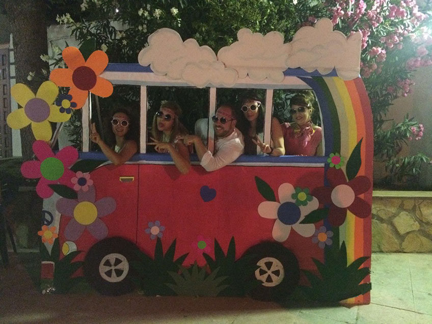 Grandes gafas, pantalones acampanados, minifaldas, peinados ye-yé, flores y una explosión de color fueron algunos de los ingredientes de esta divertida fiesta que se prolongó hasta altas horas de la madrugada.