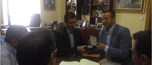 En esta visita institucional el Alcalde de Malagón ha hecho entrega de la medalla conmemorativa del V centenario al Presidente al igual que a otras autoridades que han visitado nuestra localidad.