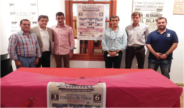 Eugenio de Mora, Luis Miguel Vázquez y Morenito de Aranda conforman el cartel de la corrida de toros que se celebrará en Daimiel el sábado 3 de septiembre a partir de las 6 de la tarde. Un festejo donde se lidiarán astados de Valdefresno, “dignos de cualquier plaza de primera”, como destacaron los empresarios Jesús Salas y Bernardino Galán y los toreros presentes en el anuncio del cartel.