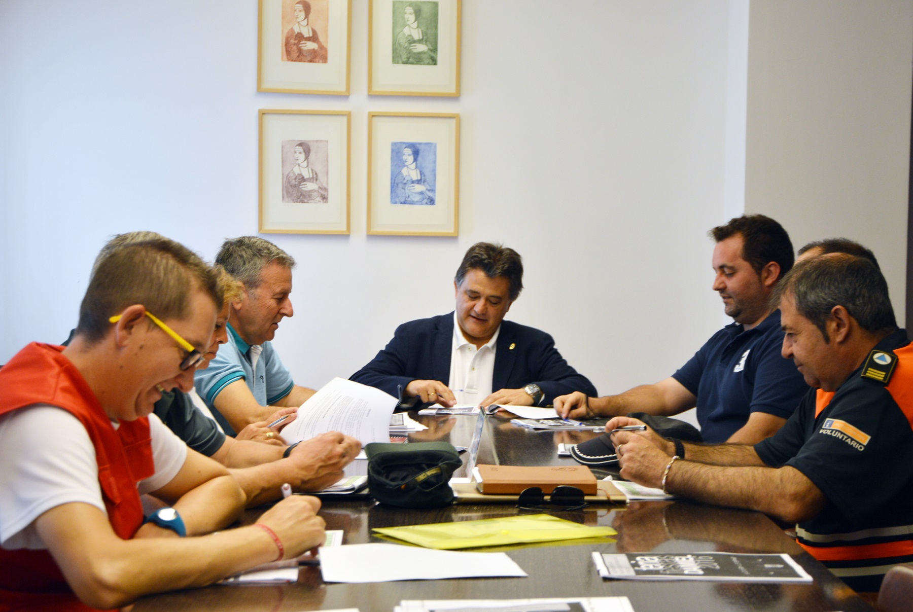 La Junta de Seguridad se reunía durante la mañana de este miércoles con el objetivo de coordinar el protocolo de actuación de cara a la celebración de la próxima Feria y Fiestas. En la sesión estaban representados los cuerpos y fuerzas de seguridad del Estado que integra la Guardia Civil junto a Policía Local, Cruz Roja, Protección Civil y Parque de Bomberos de Daimiel, además del alcalde, Leopoldo Sierra, así como la concejal de Seguridad Ciudadana, María Dolores Martín de Almagro y de Festejos, Román Ortega.