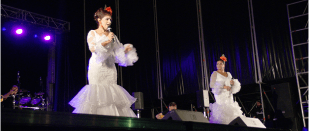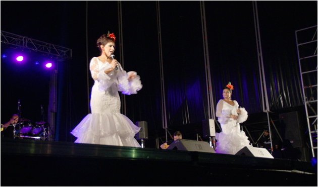 Aunque el viento y las amenazas de tormenta hacían peligrar el espectáculo de la noche del jueves, finalmente el tiempo dio tregua para que, en primer lugar, salieran al escenario Laura García y Carlos Vargas, con su copla más pura.