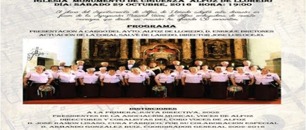 El pleno municipal adoptó en el pasado mes el acuerdo de realizar este homenaje a la agrupación coral Voces de Alfoz, como gran embajadora del municipio, desde cuya creación, en 2002, ha realizado cuatrocientas treinta actuaciones.