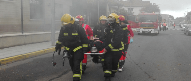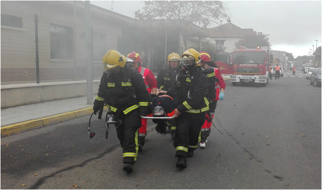 Gómez del Pulgar ha explicado que "una vez ha llegado el equipo de bomberos, que además ha tardado un poco más debido a un error (también incluido dentro del ejercicio) en la dirección del incendio, un grupo de dos bomberos con máscaras de protección respiratoria se ha adelantado hacia el interior del edificio cubierto de humo para, en primer lugar, rescatar a la personas atrapadas y, después, comenzar a extinguir y combatir el foco del incendio". Tras ellos, ha llegado el turno de Cruz Roja Daimiel que se ha dispuesto a realizar las maniobras de reanimación para después trasladar al herido al centro de salud más cercano.