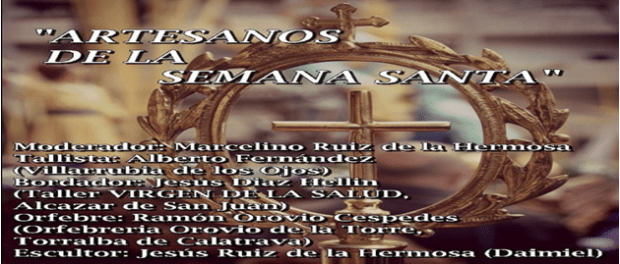 Moderados por Marcelino Ruiz de la Hermosa, intervendrán en la tertulia el tallista Alberto Fernández, de Villarrubia de los Ojos; el bordador Jesús Díaz Hellín, del taller Virgen de la Salud, de Alcázar de San Juan; el orfebre Ramón Oriovio Céspedes de 'Orfebrería Orovio de la Torre', en Torralba de Calatrava; y el escultor daimieleño Jesús Ruiz de la Hermosa.