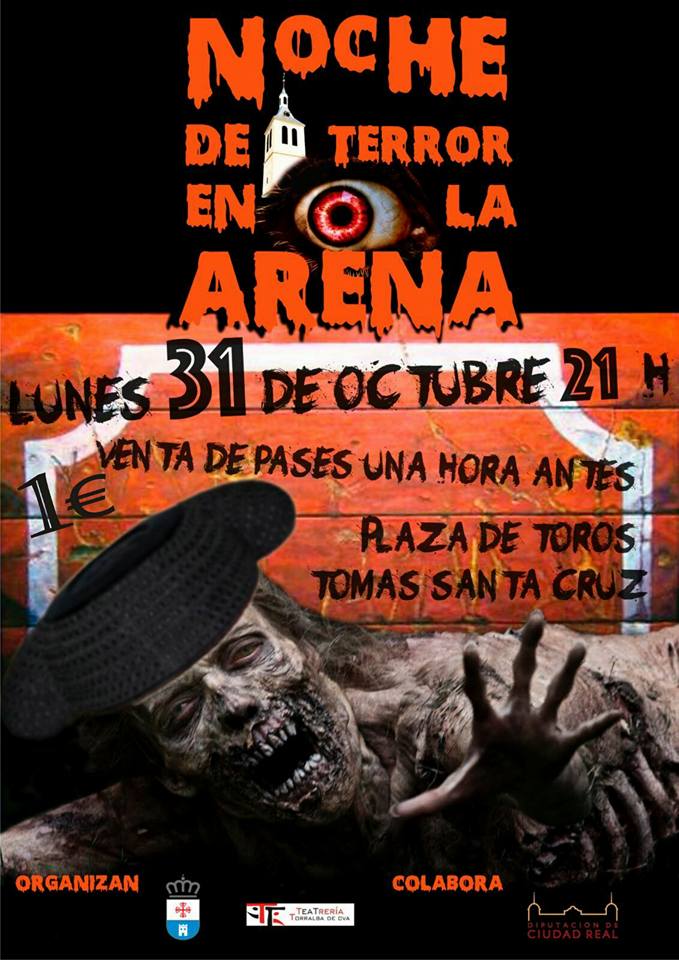 Torralba de Cva. Noche de terror en la arena Publicado en 31 octubre, 2016 por alcaldesapiedecalle en CIUDAD REAL, SOCIEDAD, Torralba de Cva // 0 Comentarios Hoy Lunes 31 a partir de las 21:00 horas, en la Plaza de Toros, NOCHE DE TERROR EN LA ARENA, no te la pierdas y disfruta de la noche de Halloween mas terrorífica. Organizan: Ayuntamiento de Torralba de Cva Colabora: Diputación de C.Real Comparte esto: Compartir en X (Se abre en una ventana nueva) X Comparte en Facebook (Se abre en una ventana nueva) Facebook Me gusta Cargando... Relacionado
