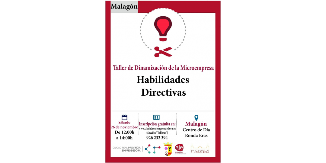 Los interesados podrán inscribirse de forma gratuita en el siguiente enlace: http://ciudadrealemprendedora.es/talleres-emprendedores/3_Taller-Dinamizaci%C3%B3n-de-la-Microempresa;-Habilidades-Directivas,-en-Malag%C3%B3n/