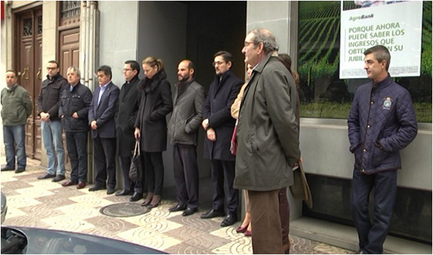 Empleados y antiguos trabajadores de la sucursal de Caixabank en Daimiel han estado arropados este mediodía por compañeros de otras entidades financieras en el paro de cinco minutos de silencio que han realizado a las puertas de su oficina como acto de duelo y repulsa por la violenta muerte del director de la sucursal de Caixabank en La Solana. A la convocatoria de los sindicatos del sector se unían también el alcalde, Leopoldo Sierra, y el primer teniente de alcalde, Jesús David Sánchez de Pablo.