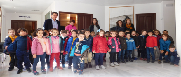 Cuarenta escolares de primer curso de Educación Infantil del colegio Calatrava han visitado durante la mañana de este miércoles el Ayuntamiento. El alcalde, Leopoldo Sierra, los ha recibido y les ha guiado a través de las dependencias municipales. Los pequeños han visitado el salón de plenos, el despacho del alcalde, y la sala de comisiones, donde Sierra les ha explicado qué es lo que se hace en el Ayuntamiento, además de responder a algunas preguntas de los pequeños.