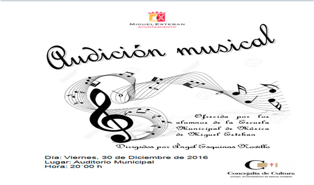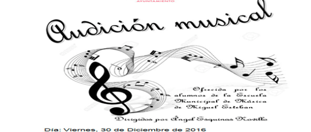 Medio centenar de niños y niñas participaron en la tradicional audición musical navideña de la Escuela Municipal de Música de Miguel Esteban, organizada por la Concejalía de Cultura del Ayuntamiento.