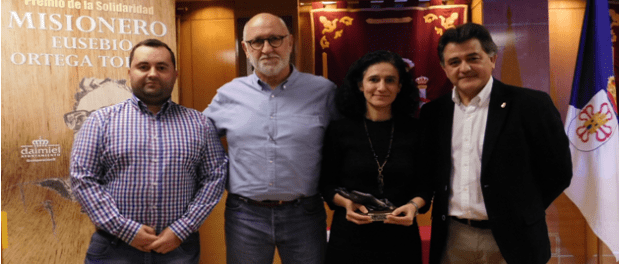 La profesora daimieleña María del Mar Loro, cooperante de la ONG 'Escuelas para el Mundo' y SOLMAN en El Salvador, Nicaragua y Senegal, recibía este jueves por la tarde el Premio a la Solidaridad Misionero 'Eusebio Ortega Torres' 2016. Lo hacía de manos del alcalde, Leopoldo Sierra, en el salón de plenos del Ayuntamiento de Daimiel, abarrotado para la ocasión.
