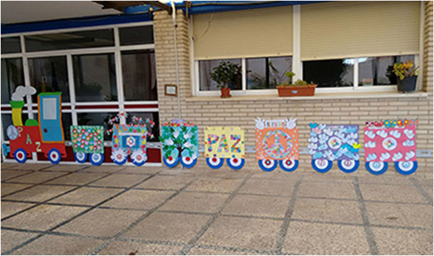 Una jornada cargada de actos simbólicos programados por los profesores del centro educativo y cuyo eje principal ha sido la realización, entre todos, del ‘Tren de la Paz’.
