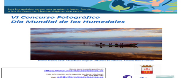 El Ayuntamiento de Villarrubia de los Ojos (Ciudad Real), a través de su Agencia de Desarrollo Local, ha convocado el 6º Concurso Fotográfico sobre las Zonas Húmedas 2017, de ámbito nacional, que este año se celebrará bajo el lema “Humedales para la reducción del riesgo de desastres naturales”.