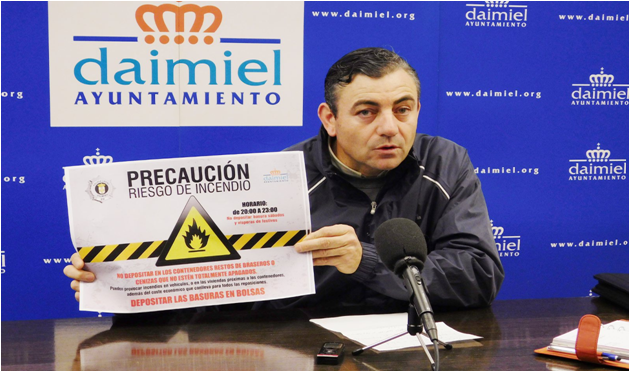 En la misma comparecencia, Ricardo Sáez ha presentado las pegatinas que se van instalar en los contenedores de la localidad. El objetivo es evitar que se viertan cenizas de braseros o chimeneas que, en algunos casos, ya han provocado varios conatos de incendios. Esta idea ha surgido de la Policía Local y se completa con la indicación del horario en el que se debe sacar la basura.