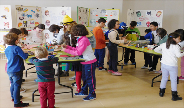 Durante esta mañana, varios niños han decidido ir disfrazados, mientras que otros, realizaban algunos piezas para sus disfraces.