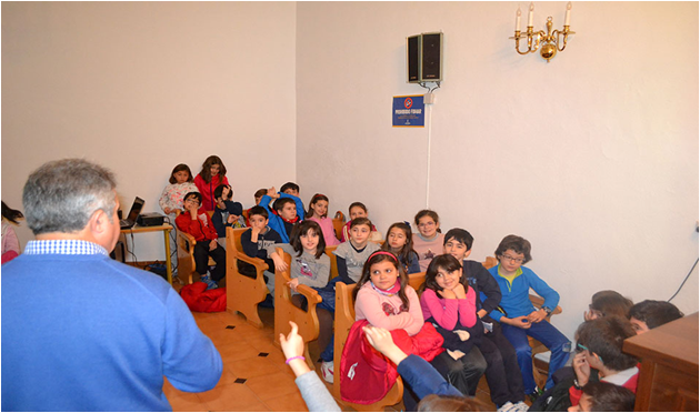 El alcalde, Pedro Casas, fue el encargado de recibir a los niños y de visionar ambas proyecciones. Casas felicitó al alumnado por el trabajo realizado y escuchó atentamente las sugerencias que realizaban los pequeños “para poder mejorar el pueblo, porque todos debemos aportar y colaborar para que Miguel Esteban sea cada día un poquito mejor”, indicaba.
