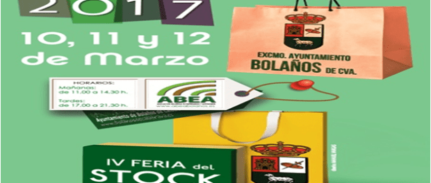 Los empresarios y autónomos bolañegos bajo el nombre de ABEA, una asociación que nació con vocación de apoyar a los principales artífices de la economía local, junto al Área de Promoción Económica del Ayuntamiento de Bolaños, han vuelto a organizar la IV Feria del Stock que se celebrará en el pabellón Municipal de Deportes Matías Gómez, situado en la carretera de Torralba, los días 10, 11 y 12 de marzo en Bolaños de Calatrava.