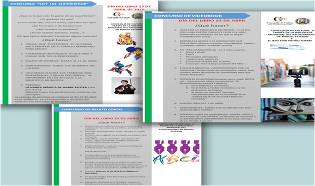 La concejalía de Cultura del Ayuntamiento de Miguel Esteban, a través de la Biblioteca Municipal y en colaboración con el IESO Juan Patiño Torres ha organizado unas jornadas culturales para conmemorar el Día del Libro que tendrá lugar el próximo 23 de abril.