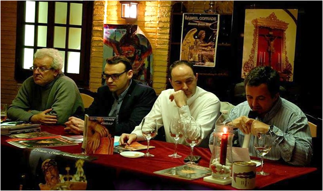 Una vez presentada la publicación, se inició una "interesante tertulia" sobre las publicaciones cofrades que contó con las intervenciones de Alfonso García, colaborador en varias publicaciones de la Semana Santa sevillana, de Marcelino Ruiz de la Hermosa colaborador en la edición de la guía que emite la JJHH de Daimiel; de Vicente Moreno, gerente de la Imprenta VIC que durante 50 años editó la revista de la Semana Santa.