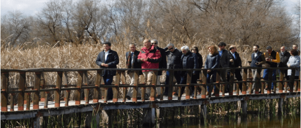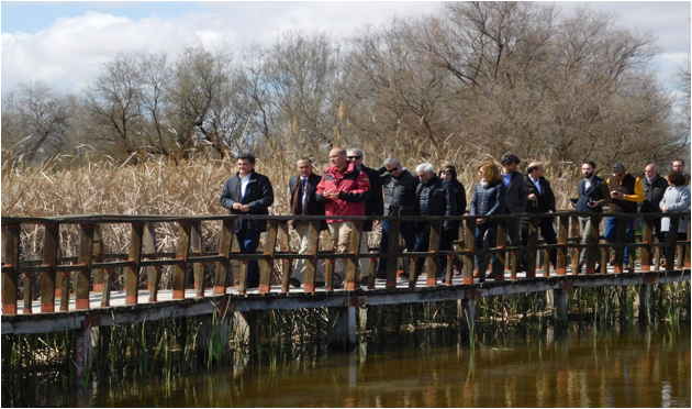 El Delegado del Gobierno en Castilla - La Mancha, José Julián Gregorio, visitó este miércoles el Parque Nacional de Las Tablas con motivo de la celebración del Día Mundial del Agua. Allí le recibía, a él y a los cinco subdelegados provinciales que le acompañaban, el alcalde de Daimiel, Leopoldo Sierra, los concejales del Equipo de Gobierno y la alcaldesa de Villarrubia de los Ojos, Encarnación Medina. El director del parque, Carlos Ruiz de la Hermosa les guió por las pasarelas informando de la situación actual del humedal y sus características principales.