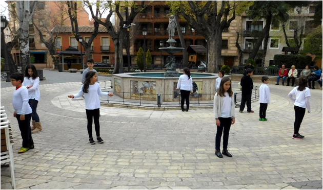 Los primeros en actuar han sido el grupo infantil de la escuela, con la acción ‘Exules 1’, en la que una decena de alumnos mostraban en varios puntos del Parterre distintas situaciones de rechazo a uno de ellos, que al final, vencido por la tristeza, encuentra la ayuda de los demás. Según explicaba el director de la escuela, Aníbal Fernández, el final “pretende reflejar un mensaje de esperanza”.