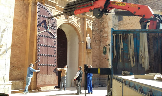 Desde este lunes lucen remodeladas los portones de la entrada sur (lateral) de la iglesia de San Pedro. Según ha explicado el párroco, Eulalio Asensio, se ha actuado sobre la parte baja de las puertas, deterioradas por el paso del tiempo y las inclemencias meteorológicas. De esta manera, se ha sustituido la madera podrida y se ha añadido un nuevo vierteaguas.